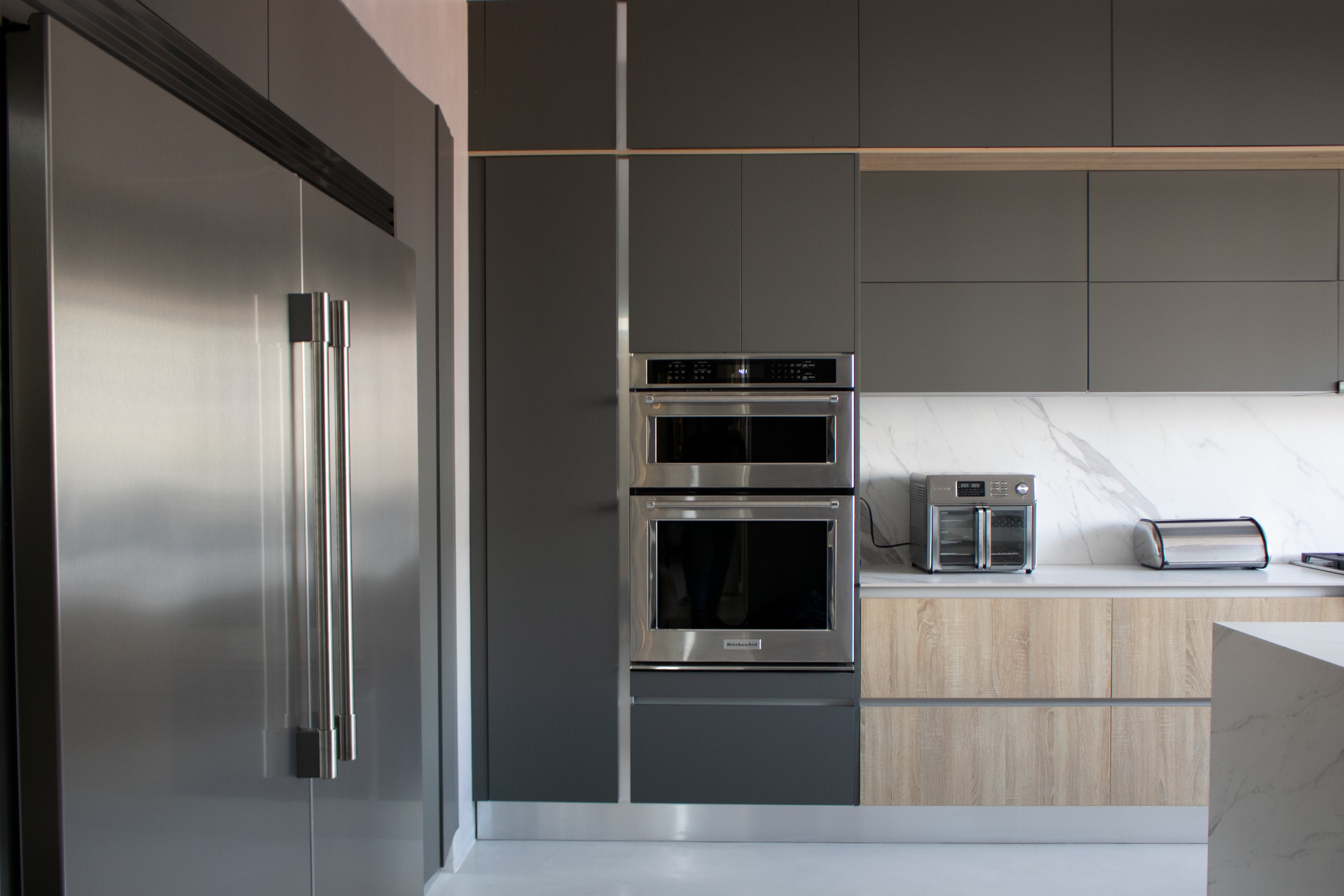 Esta cocina se desarrolló bajo un concepto de diseño europeo, caracterizado por líneas limpias, superficies continuas y una estética sobria pero sofisticada. Se optó por puertas y cajones sin manijas sobrepuestas, logrando una lectura visual más elegante y atemporal.