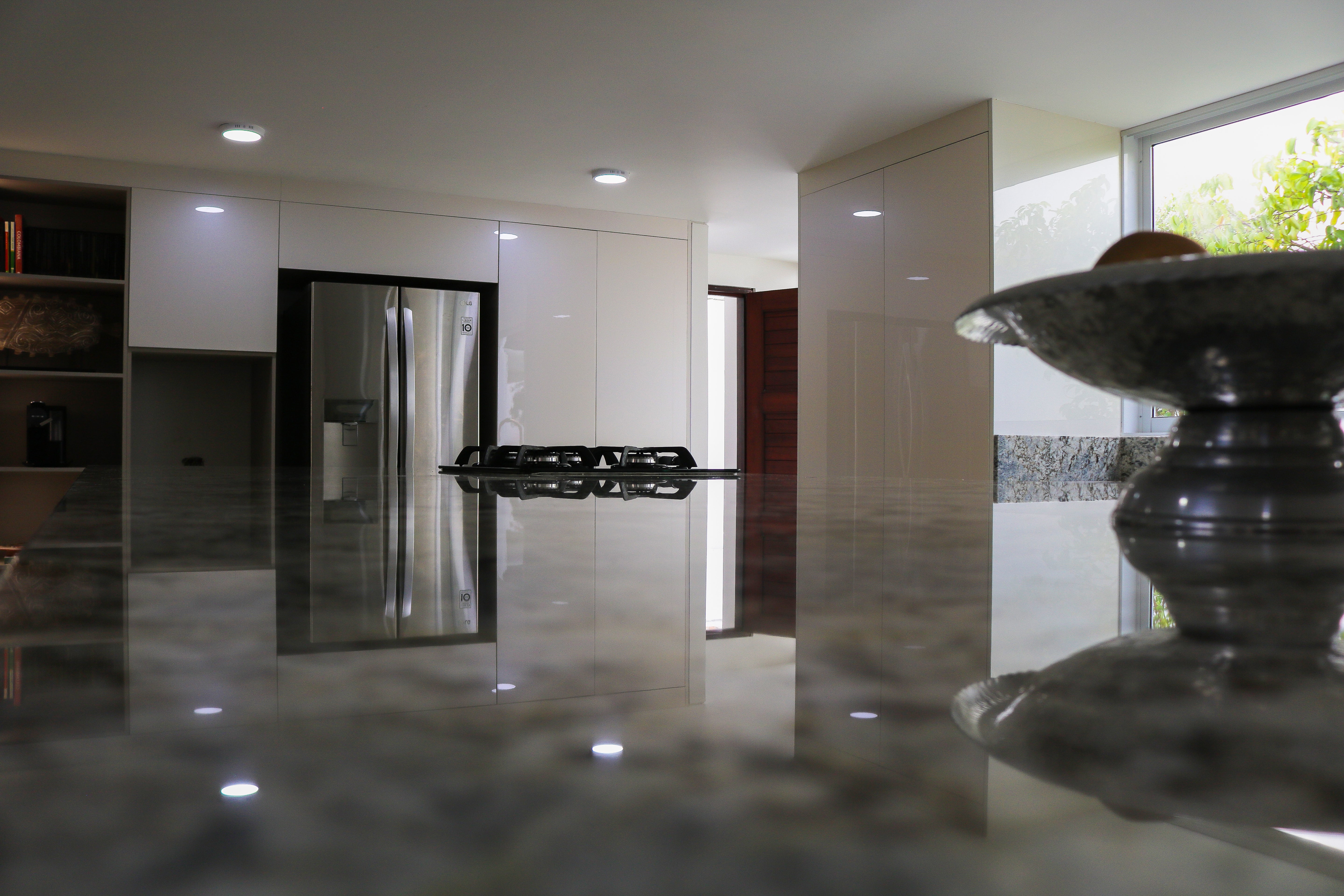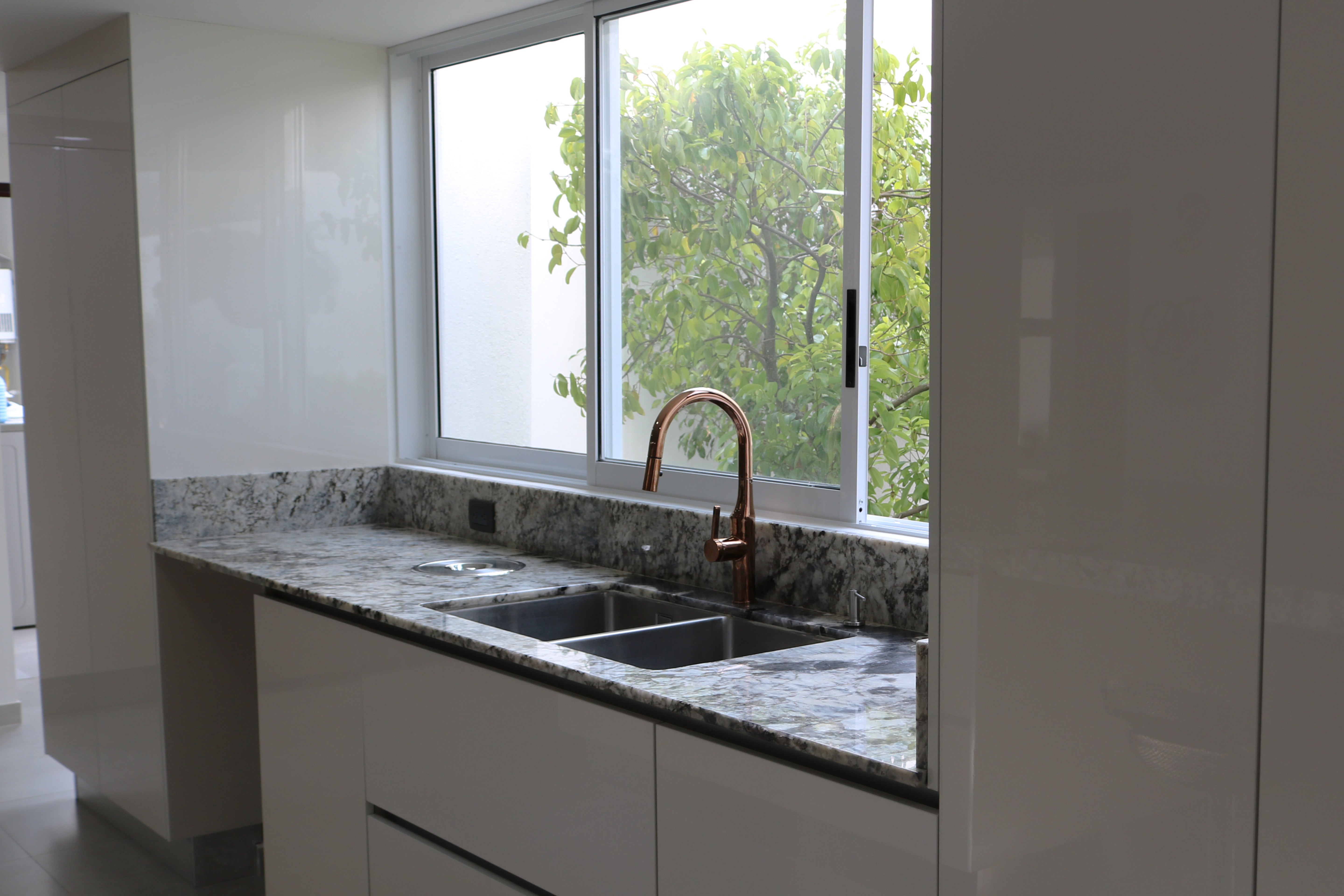 Esta cocina se desarrolló bajo un concepto de diseño europeo, caracterizado por líneas limpias, superficies continuas y una estética sobria pero sofisticada. Se optó por puertas y cajones sin manijas sobrepuestas, logrando una lectura visual más elegante y atemporal.