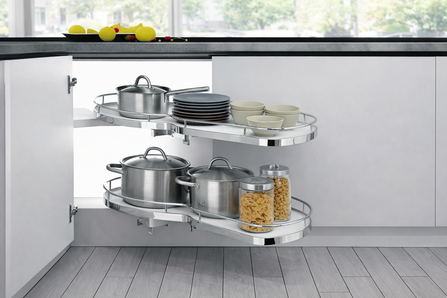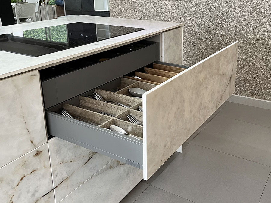 Esquinas mágicas; bandejas y despensas extraíbles; cajón zócalo Space Step®; condimenteros y canastas de vidrio deslizables, son algunos de los accesorios especiales de lujo que podrás incorporar al diseño de tu cocina.