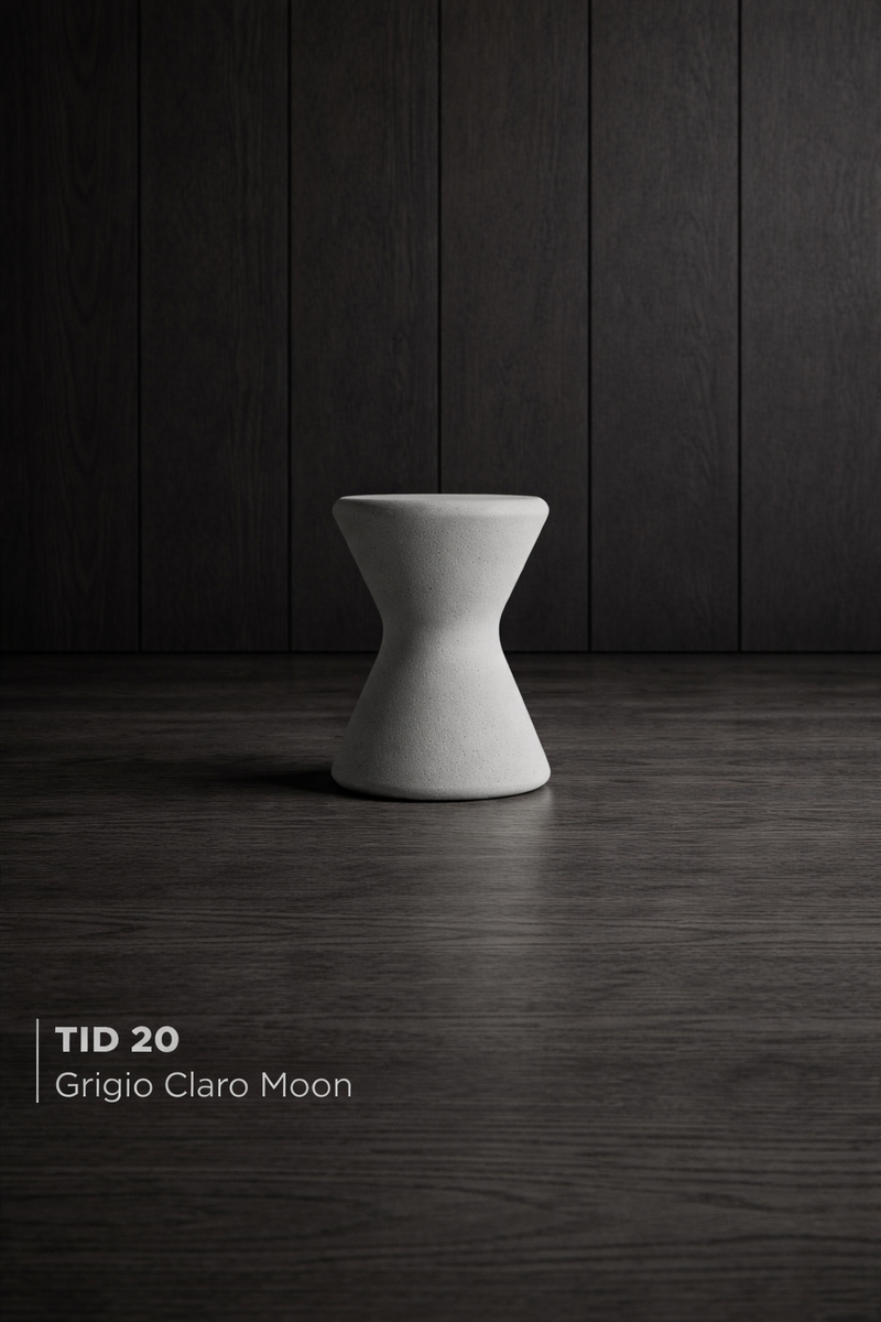 Mesa auxiliar o butaca Tid 20 con altura de 50 cm y 38 cm de ancho. Su diseño minimalista permite utilizarla como asiento ocasional o mesa auxiliar en proyectos de interiorismo contemporáneo.