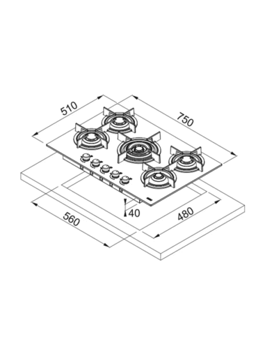 Cubierta a Gas Cristal Negro Franke 75 cm